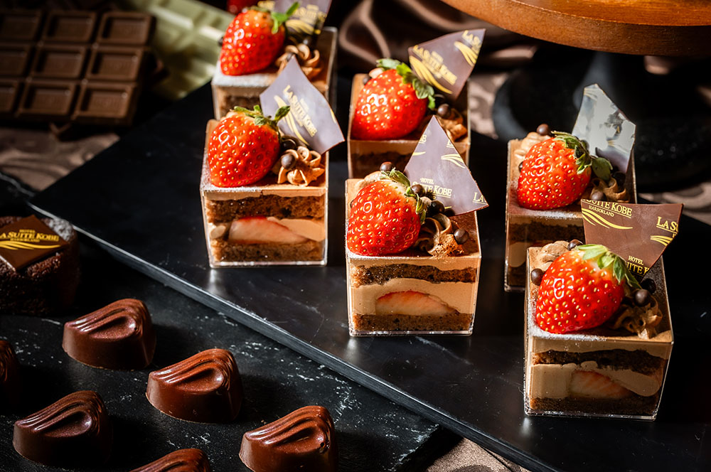 ラ・スイート神戸オーシャンズガーデンの恒例イベント、ストロベリーレッドブッフェ。今回はイチゴとショコラをテーマに、2025年3月に開業した姉妹施設「ラスイートルパンビル」と合わせて開催します。両館それぞれのパティシエや料理長が腕を振るう自慢のスイーツとフィンガーフードをお愉しみいください。
